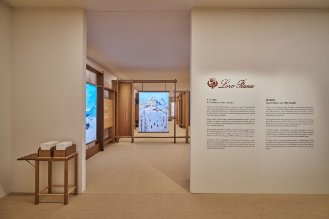 테마는 다섯 개 섹션으로 구성된다. ‘로로피아나 시너리즈(Loro Piana Sceneries)’를 시작으로 ‘코즈 오브 더 하우스(Codes of the House)’, ‘보태닉 레퍼토리(Botanic Repertoire)’, ‘카르도 페이즐리(Cardo Paisley)’, ‘텍스처드 앱스트랙션스(Textured Abstractions)’ 순으로 이어지며, 브랜드의 소재와 기술, 자연과의 관계를 다양한 방식으로 풀어낸다.
