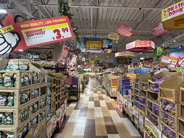 빌리지 오브 돈키(괌 돈키호테)는 미국 내 최대 규모의 돈돈돈키 매장이다. 일본 식품·과자·화장품, 괌 로컬 기념품, 생활용품이 한 공간에 집결해 있다. 특히 괌에서만 생산되는 초콜릿, 코코넛 오일 비누, 로고 티셔츠 등 '메이드 인 괌' 코너는 선물을 고르기에 제격이다. 쇼핑이 목적이 아니어도 한 바퀴 둘러보는 것만으로 시간이 훌쩍 지나가는 곳이다.