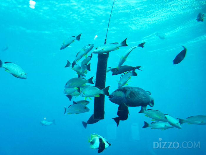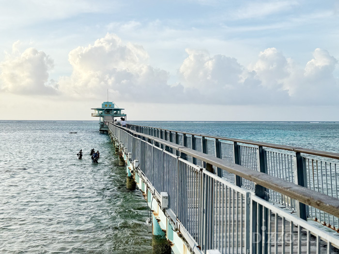 피시아이 마린파크의 수중전망대는 마이크로네시아 지역에서 유일한 해중 전망대다. 피티 베이 해양보호구역 위로 약 300미터 뻗은 다리를 건너 나선형 계단을 내려가면, 수심 6미터 바닷속이 26개의 관측창을 통해 펼쳐진다. 200여 종의 열대어와 80여 종의 산호가 유리창 너머에서 움직인다. -