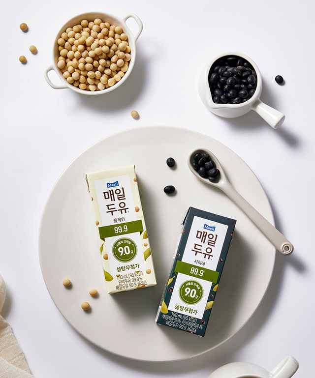 신제품은 기존 ‘매일두유 99.9’의 콘셉트를 유지하면서 블랙푸드인 서리태를 더해 맛과 영양을 강화한 것이 특징이다. 서리태는 추운 환경에서 자라 조직이 단단하고 고소한 풍미가 강한 콩으로, 제품에는 국산 서리태 원액을 포함해 진한 맛을 구현했다.