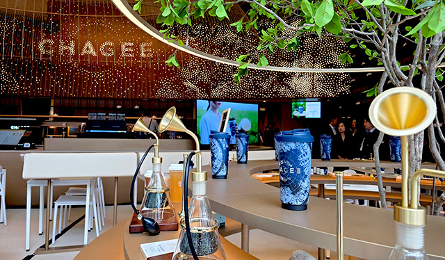 별자리 디자인을 활용한 조명은 밤하늘의 은하수를 연상시키며 브랜드 아이덴티티를 시각화했고, 한국의 처마와 기와에서 착안한 구조, 도자기 차 주전자 디테일 등을 통해 공간에 한국적 정서를 녹여냈다. 천장에는 실크 소재를 적용해 차가 세계로 확장돼 온 실크로드의 흐름을 상징적으로 표현했다. 한국 건축가 및 작가 제니스 채와의 협업 역시 이러한 공간적 완성도를 높이는 요소다.