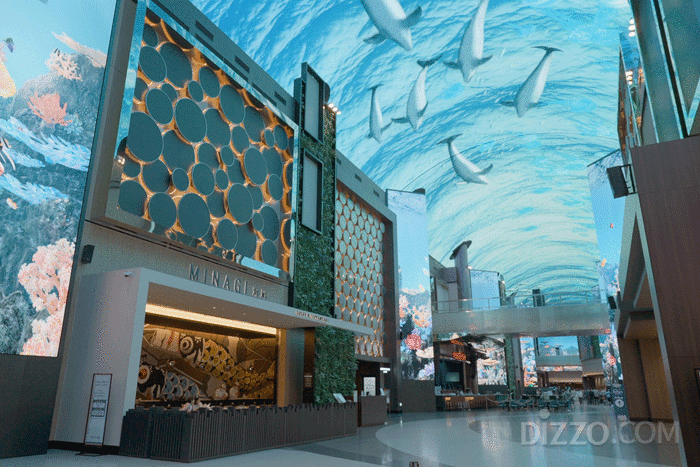 미나기가 자리한 인스파이어의 디지털 엔터테인먼트 거리 '오로라'는 150m 길이의 미디어아트 공간이다. 테판야키 카운터에서 셰프의 요리를 지켜보는 고객에게 주방은 하나의 공연이 되고, 고개를 들면 미디어아트가 펼쳐진다. 이미라 셰프는 이를 인스파이어가 추구하는 '플레이케이션(Play+Vacation)'의 미식적 확장으로 설명한다. "지친 마음을 가지고 오셔도 됩니다. 맛있는 음식을 드시고 좋은 시간을 보내신 후, 새로운 영감과 경험을 가지고 가셨으면 하는 바람입니다. 음식과 공간, 스토리가 결합된 공감각적 경험을 드리고 싶습니다."