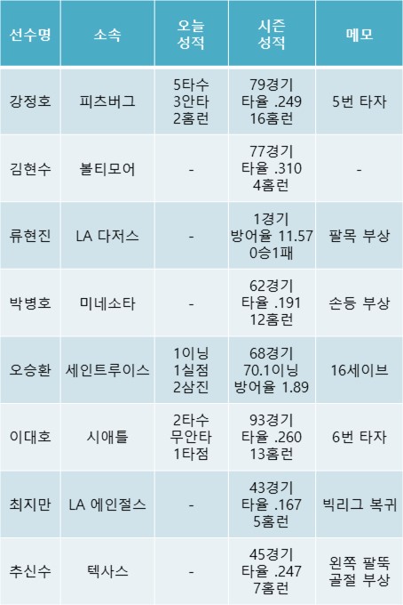 [로빈의 발칙한 야구이야기] 9월 7일, 메이저리그 소식 '오승환에게 홈런을 선사한 킹캉 강정호'